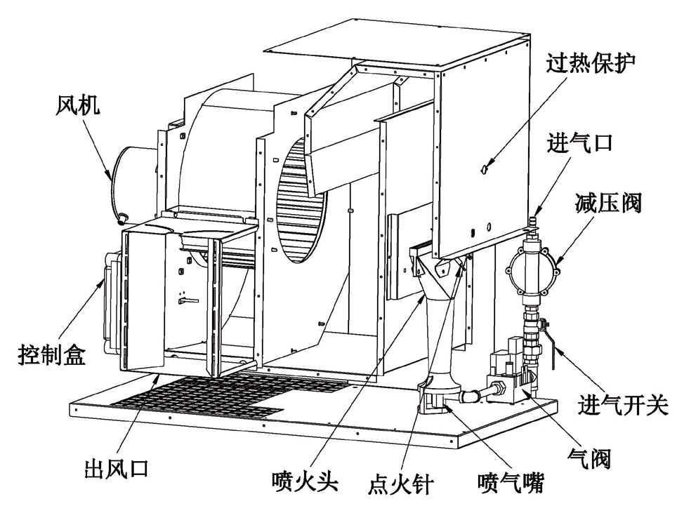 Hot-Box-直燃型液化氣/天然氣熱風機通過天然氣或者液化氣的燃燒產生熱量,離心風機吸入熱氣并排出到加熱空間。熱空氣溫度超過100度,有部分燃燒尾氣,包括Co2,H2O及微量Co(10PPM以下);溫度控制器可以根據需要控制加熱器啟停。采用藍焰直燃技術,能量全部應用,沒有任何浪費、全封閉電機耐高溫,并帶有散熱裝置;全封閉防水控制盒、為了更安全的應用于烘干房,燃氣閥采用外置降溫、多重安全裝置、可以室內安裝,也可以室外安裝。可以吊裝或使用廠家提供的支架靠墻安裝。電子溫控:防水防塵,精度為0.1度,回差可以設定、熱風分流器:調節熱風吹送方向、沉淀物捕集器:放置氣體中的雜質損害閥組、鍍鋅鋼支架:加熱器靠墻安裝使用、耳機調壓閥:燃氣壓力降低到使用范圍、匯流排:使用瓶組供氣、燃氣過濾器:過濾燃氣中雜質的技術特點。烘干房的加熱,可以根據需要提供回風套件,可選燃氣匯流排、一級減壓閥、過濾器、壓力表、手動閥、不銹鋼管等、,戶外安裝套件:防雨蓋、風口法蘭等、溫控器、掛墻安裝套件:底撐、Y型燃氣過濾器、戶外供氧接口、熱風分流器等配件,有二級減壓閥及橡膠氣管,排污接頭,吊裝套件:吊鏈及吊鉤等標準配件。